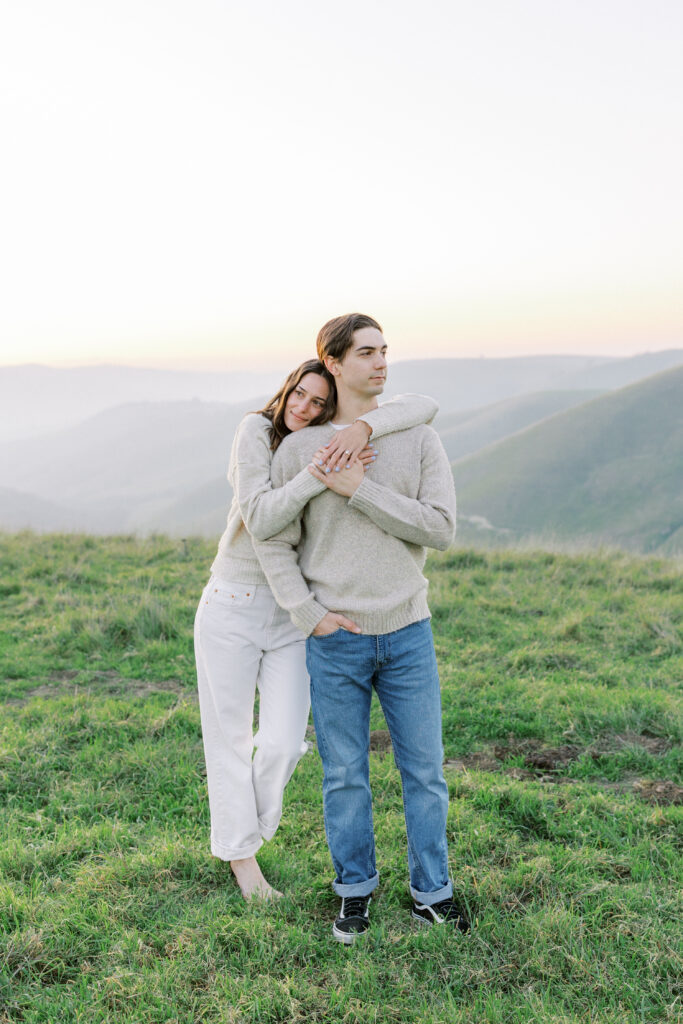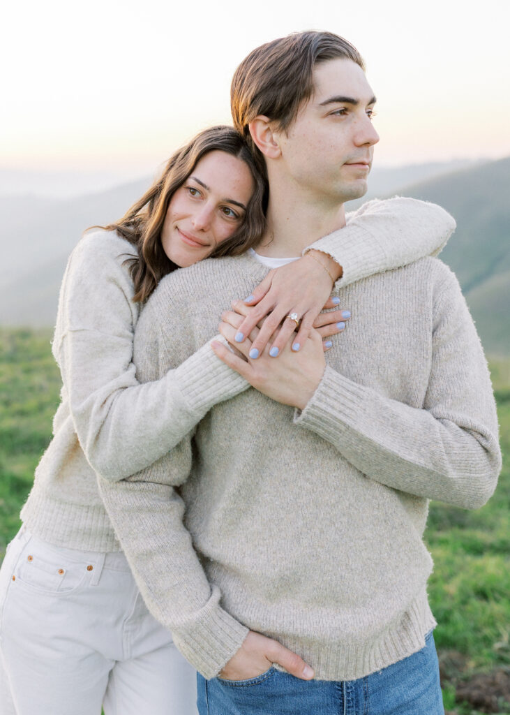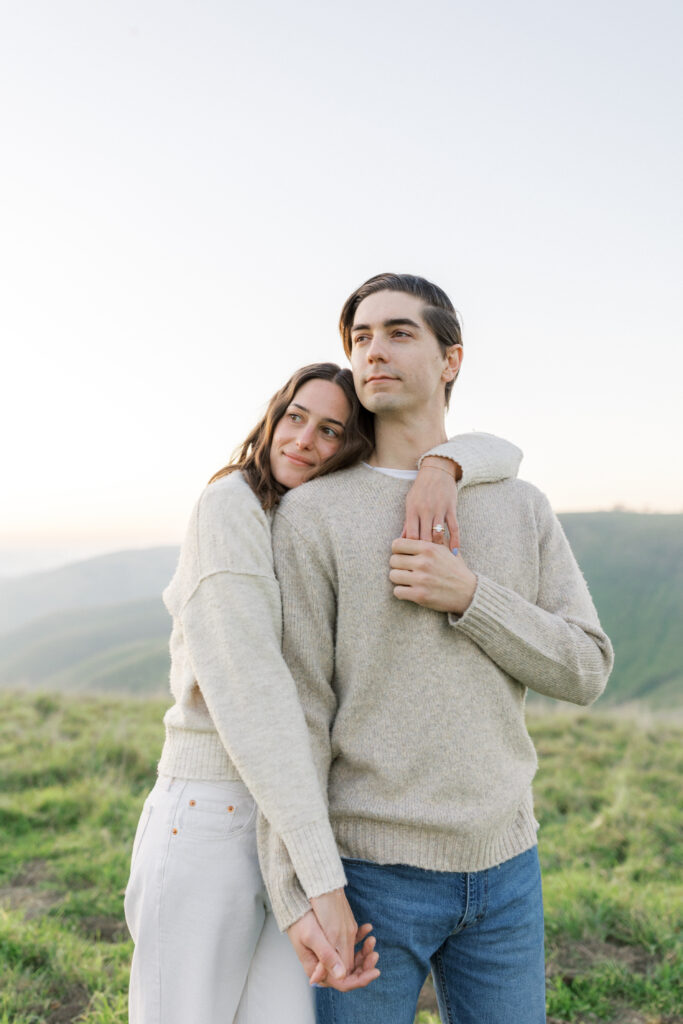 In the spring, these hills transform into a vibrant green landscape that feels cinematic and timeless—one of the most underrated engagement photo settings in the Bay Area.